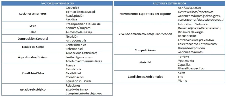 Dentro de cada modalidad deportiva encontramos diferentes factores que afectan de manera directa a la hora de que aparezcan o no lesiones en nuestros deportistas. Podemos diferenciar entre